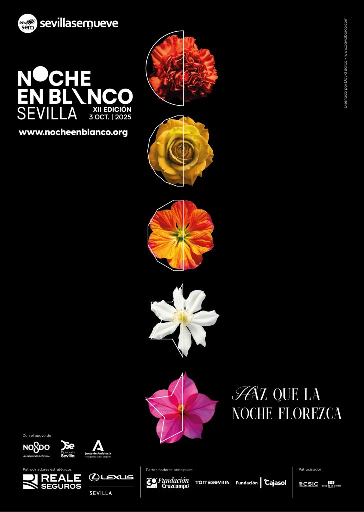 La asociación ‘sevillasemueve’, organizadora del evento, reivindica con el cartel de esta decimosegunda edición que la Noche en Blanco hace florecer el otoño cultural de Sevilla.
